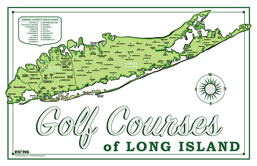 Long Island Golf Course Map โ LOST DOG Art & Frame